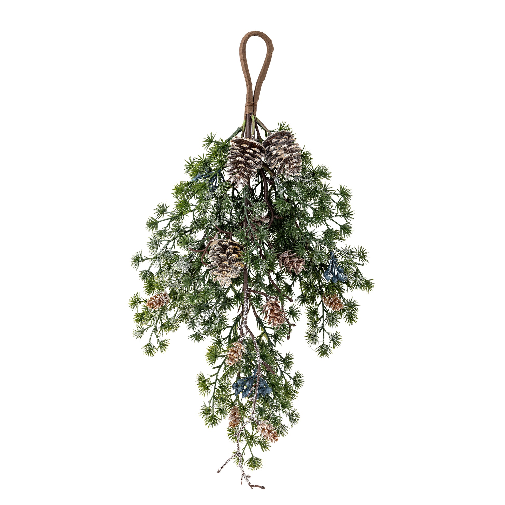 De Ceder Deco van Bloomingville is een prachtige en sfeervolle deurversiering. De combinatie van sparrentakken, dennenappels en een subtiel vleugje zilveren glitter zorgen voor een betoverende uitstraling die warmte en welkom uitstraalt.